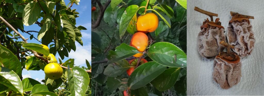 柿の木や実は、少年期の記憶にダイレクトにつながる。私の実家にあった柿の木はだいぶ小ぶりではあったものの、家族が「この柿は半木ざわし」と呼んでいたように、実りながら渋が抜けて甘みを帯びてくるような種類。